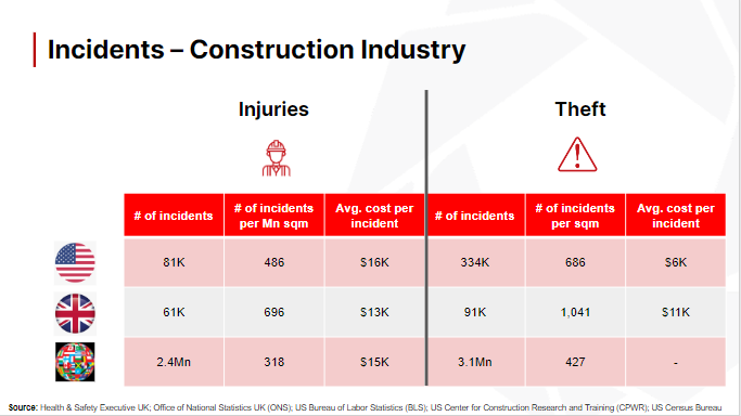 The table above shows the impact of construction cameras on project delays. With an estimated 1.58 trillion euros loss due to delays, construction cameras have a 40.3% influence on the causes of delays. These types of causes of delays cost the industry $669B annually.�