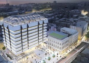 Bishops Square is a five-storey existing office block located on Kevin Street Dublin 8. Stewart Construction expanded the offices by an additional 3,154 sq. meters. This included an increase of the floorplates in the existing top two floors and the introduction of a sixth floor to the building.