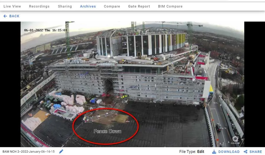 With Evercam's full video recordings, incidents are immediately visible, and users can request video archives to review incidents in detail. By leveraging this feature, companies can avoid costly job site shutdowns that can result from incidents, such as accidents or safety violations. The ability to quickly determine the cause of an incident and document it using 4k video documentation can help ensure that remediation is implemented promptly, reducing the likelihood of future incidents.